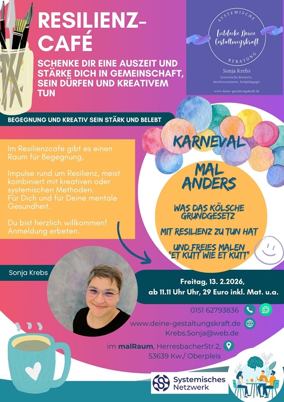 Impulse rund um Resilienz. meist kombiniert mit kreativen oder systemischen Methoden.